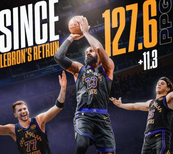NBA季后赛直播在线观看 自从勒布朗·詹姆斯回归以来,湖人队的场均得分增加了11.3分。